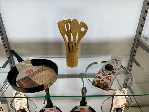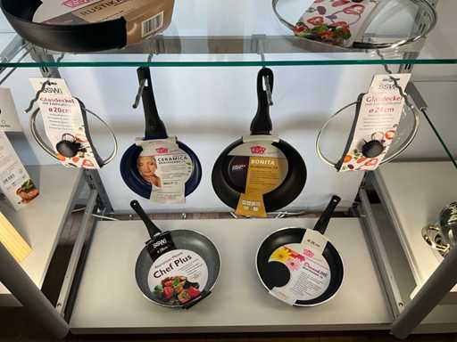 Waaronder braadpannen in diverse diameters, 1x spatelset, 3x passend glazen deksel