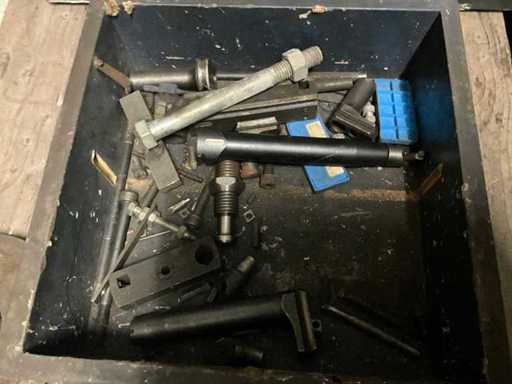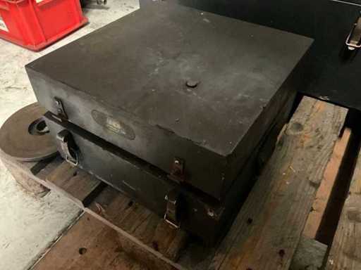 Compleet met enige toebehoren, liggende in houten opbergkist Zowel om gaten te kotteren als planair vlak te zetten in 1 beweging en met automatische voeding