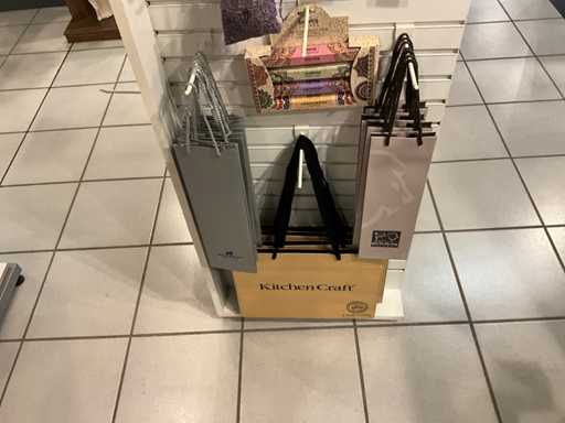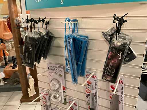 Waaronder diverse messen SSW, eiersnijder SSW, steakmessen, diverse bescherhoezen, diverse tellerspiralen, diverse zakken, divers geur, divers decoratie
