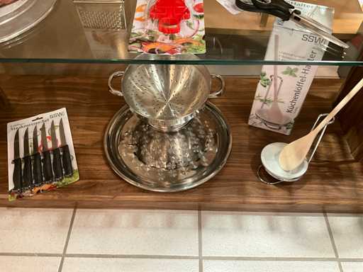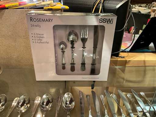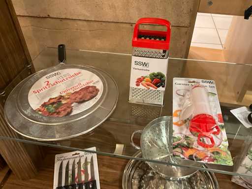 Waaronder 24 dlg bestek voor 6 personene, eiersnijder, garneerset, vergiet, bestek SSW,mengkommen, antispatdeksel, scharen,mengkommen,sauspotje met warmhouder...