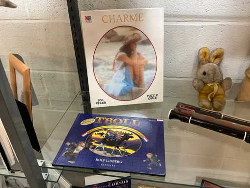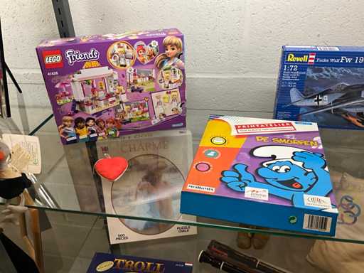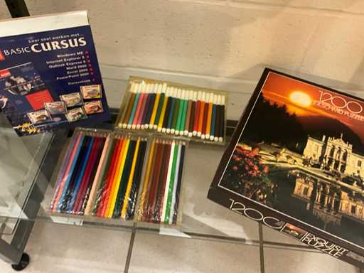 Waaronder cd Roms, modelbouw, puzzels, blokfluit, potloden en stiften,knuffelbeer en kussens...