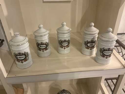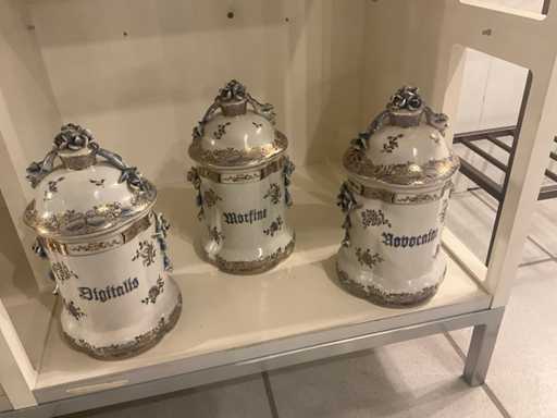Waaronder PARIS ROYAL, porselein in diverse afmetingen , 6 x speciale apotheekootten met speciale vorm en roosjes in porselein