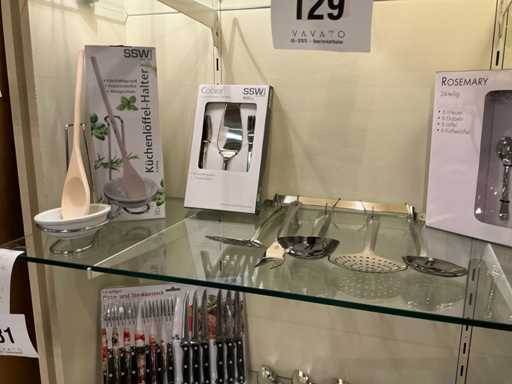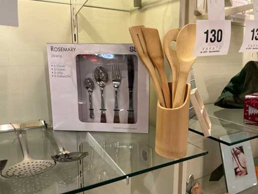 Waaronder ROSEMARY,SSW 24 delige bestekken voor 6 personnen, taartset met schep voor 8 personen, keukenlephouder, steakset, lepelrek......