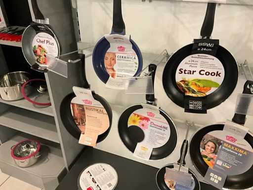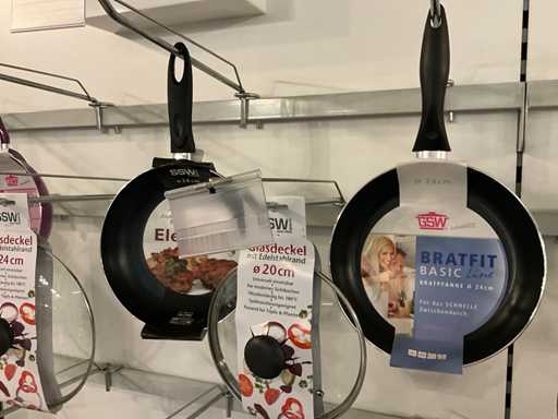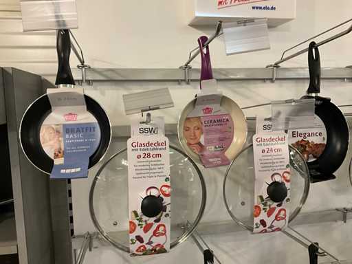 Waaronder pannen GSW, DURANDAL, SSW, deksels glas IBILI, DURANDAL, antispatdeksels - diverse maten en uitvoeringen en grootes...