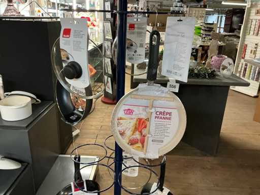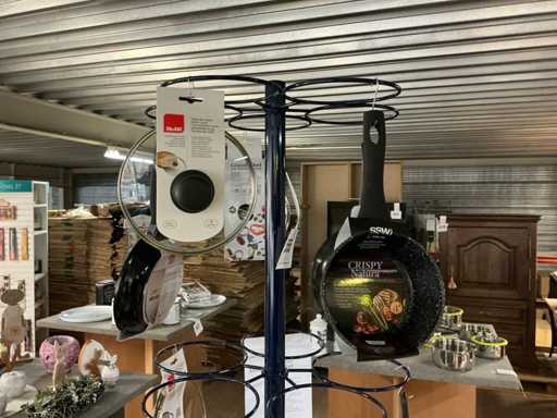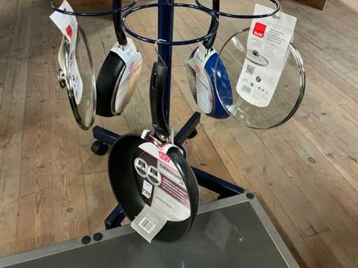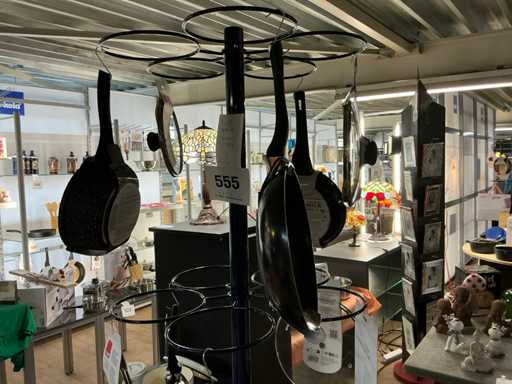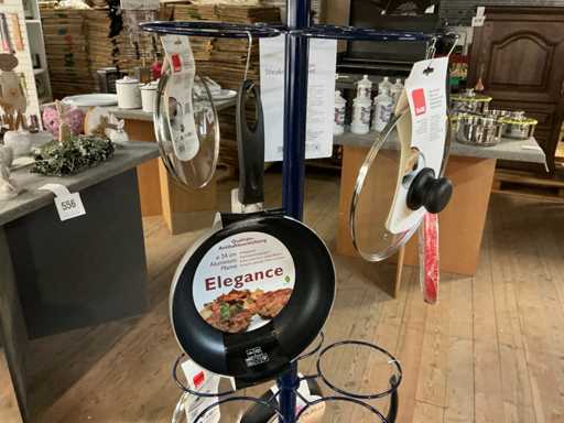 Waaronder 7x braadpan diameters 20,24 en 28 cm, 1x pannenkoekenpan met verdeler, 6x passende glasdeksel,1 x steakmessenset voor6 personen, zonder stand
