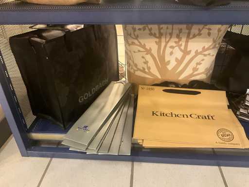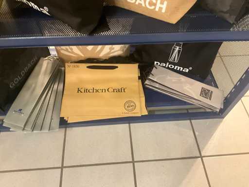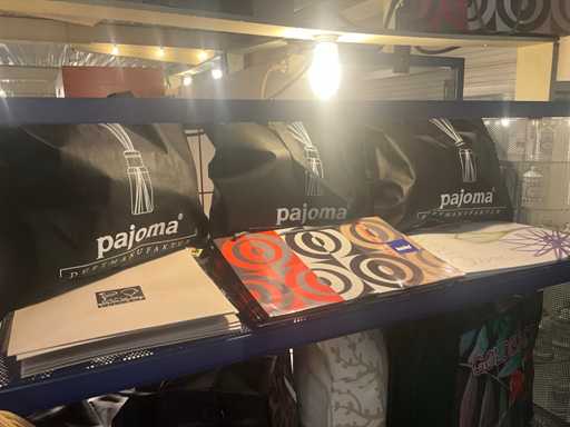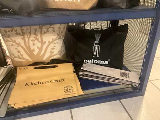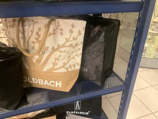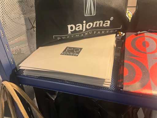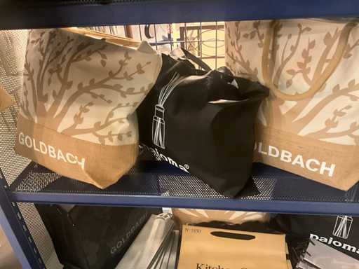 Waaronder stoffen tassen PAJOMA, GOLDBACH, Compleet met circa 50 diverse papieren tassen in diverse afmetingen waaronder PEUGEOT