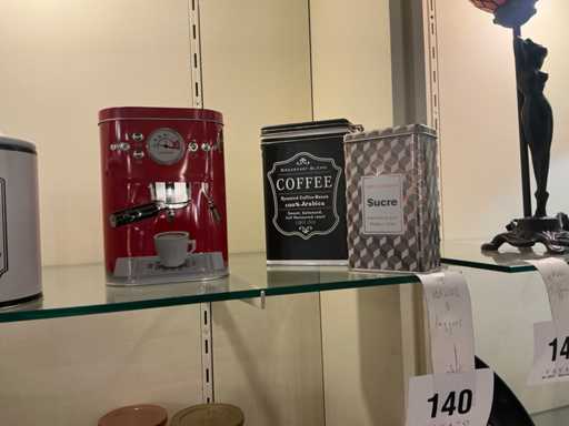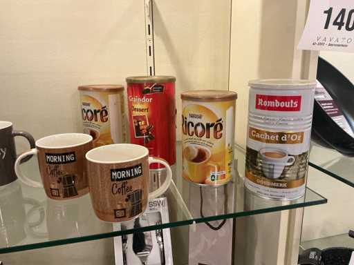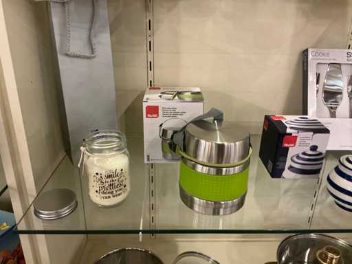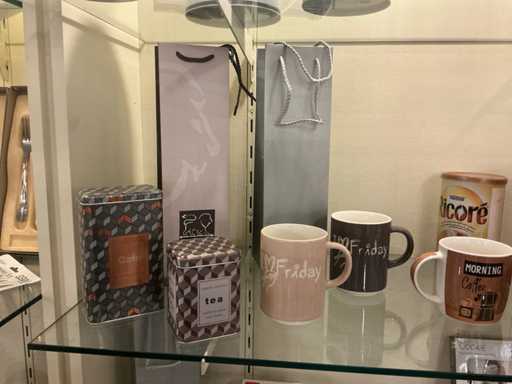 Waaronder diverse suiker en koffiepotten, diverse koffietassen, thermos IBILI, bestekset,vintage bewaardozen.....