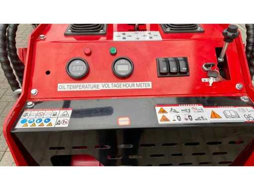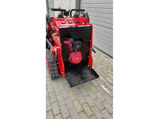 Machinetype: DM 360 Motortype: Dieselmotor, 1 cilinder Motorinhoud: 11 PK, 7 kW Motorfabrikant: KOOP ( D190) Startsysteem: Elektrisch met sleutel Aandrijving: Vaste Rupsen Spoorbreedte: 970 mm Snelheid V/A: +- 3 km/h Zwenkradius: 360 graden Max. hellingshoek: 30 graden Remsysteem: Automatische veiligheidsrem Gewicht bruto: +- 1200 kg Gewicht netto: +- 840 kg Modelnummer: DM360 ssl