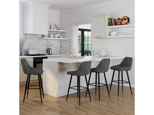 Donkergrijze fluwelen zitplaatsen, barkrakrukken en metalen poten (x4)