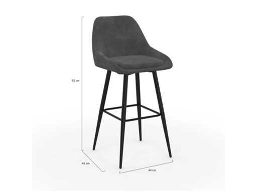 Kenmerken Totale afmetingen: (L) 44 x (W) 46 x (H) 92 cm Materialen: fluwelen bekleding en zwarte metalen voet Kleur: Donkergrijs Zitafmetingen: (L) 44 x (W) 34 x (H) 65 cm