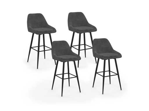 Donkergrijze fluwelen zitplaatsen, barkrakrukken en metalen poten (x4)