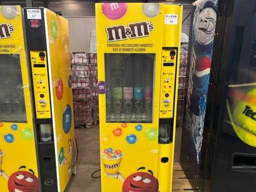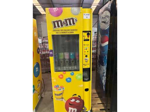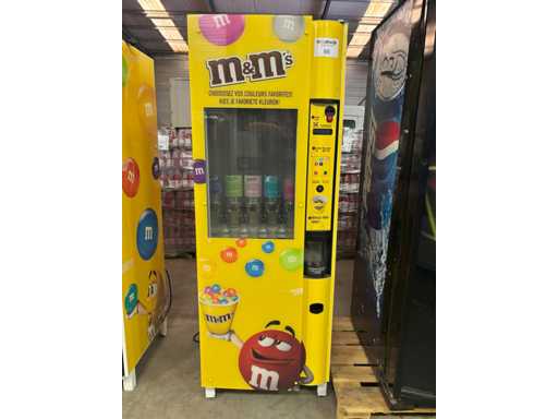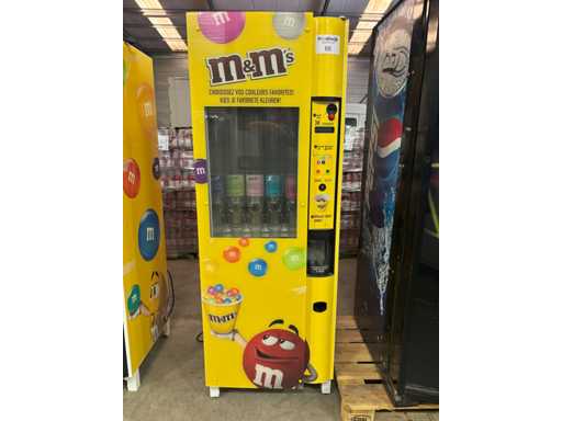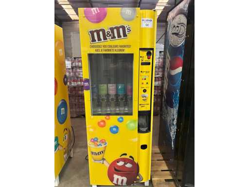 Automaat voor verkoop van M&M's of andere soorten snoep of nootjes in staat waarin toestel zich bevindt