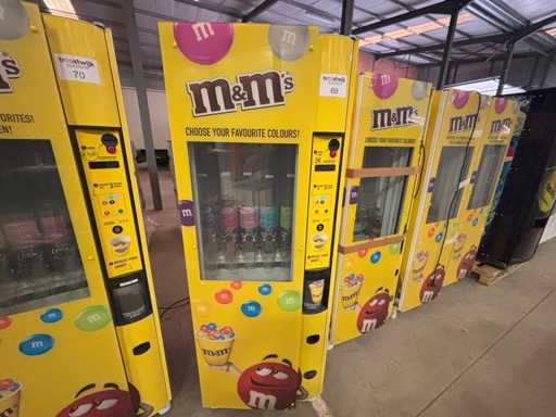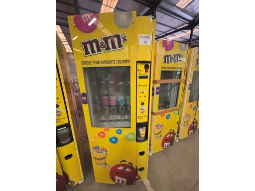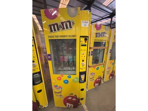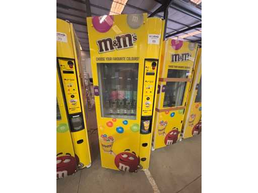 Automaat voor verkoop van M&M's of andere soorten snoep of nootjes in staat waarin toestel zich bevindt