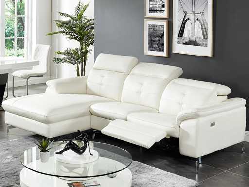 Elektrische Relax hoekbank in buffelleer - Ivoor - linker hoek