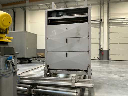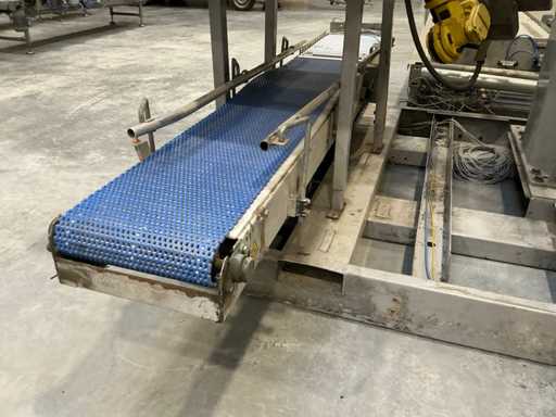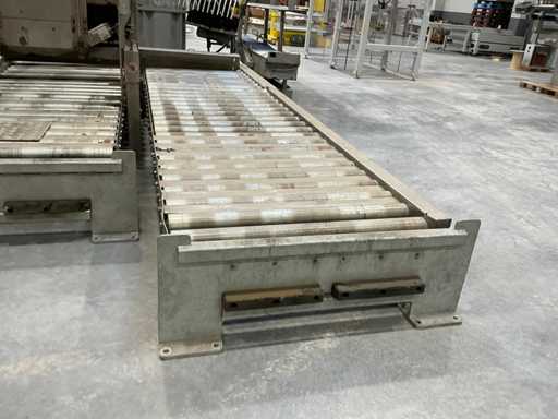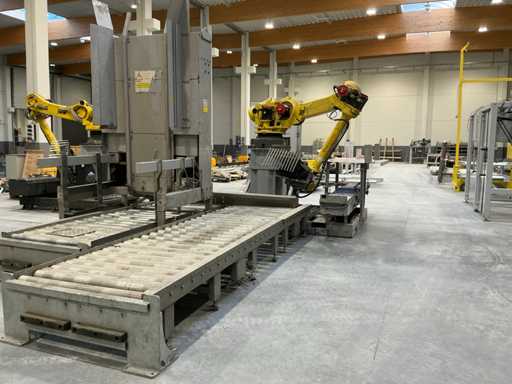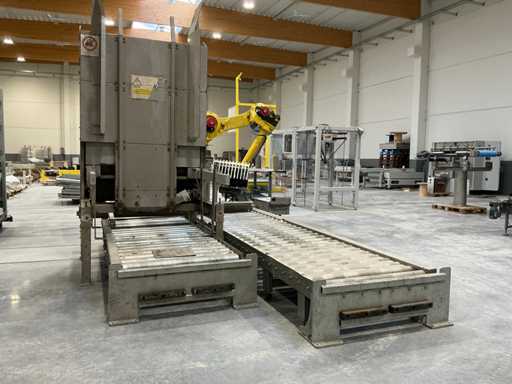Voorzien van : elektrisch aangedreven transportband; 3 diverse rollerbanen / met inbegrip van controller Fanuc type System R-30iB/ 2 aanrijbeveiligingselementen en hekwerk.