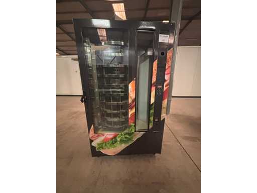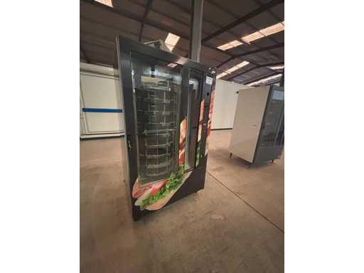 Voedingsautomaat met 10 plateaus voor de verkoop van maaltijden, broodjes, desserts en diverse goederen in staat waarin toestel zich bevindt