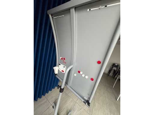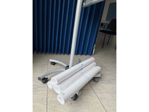 Verrijdbaar en met papier, compleet met 4 rollen reservepapier, stiften en magneten.