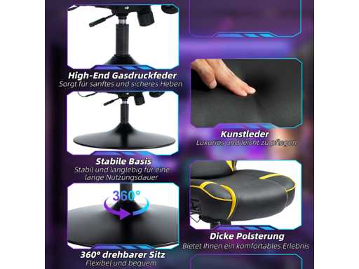 Gamingstoel met rockerfunctie en luidspreker, lenden- en neksteun