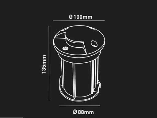 IP67 waterdicht, material aluminium en glas, afm Ø 100mm x 135mm, voltage 220-240V, GU10 spot niet inclusief, bevestiging niet inclusief, geschikt voor binnen en buiten, SKU 01168