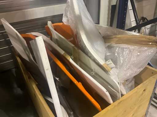 Waaronder ook nog 5 paletten op rek met divers toebehoren.