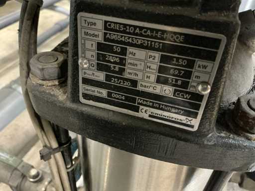- 2x Grundfos Crie5-10 vertikale frequentiegestuurde meertraps centrifugaalpomp, 5800L/h, H69,7m