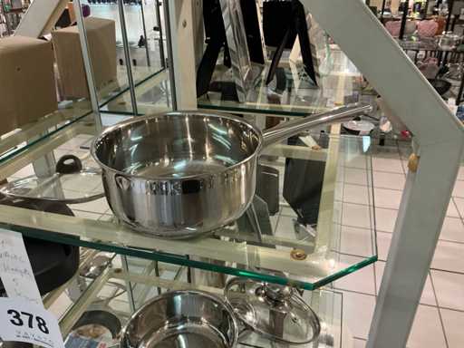 4x kook^potten diverse diameters voorzien van deksel, steelpan 16 cm