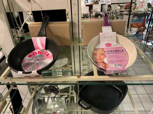 Gsw 6 Braadpannen en 1 x sauteuse voor vetarm bakken met glazen deksel vierkant