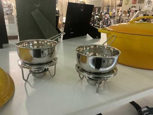 Gsw Gietijzeren kookpot (2x) en 2 x sauspannetje met verwarmer