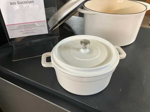 3 x ronde kookpotten gietijzer met deksel serie creme special met gemailleerde binnenkant - diverse diameters