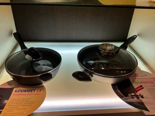 2 x sauteerpanmet deksel en 1 x vetarm bakken pan met deksel