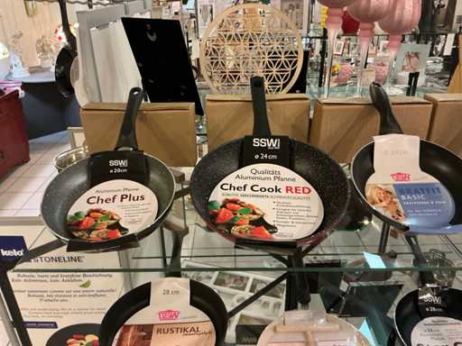 Waaronder 6x braadpan en 1x pannenkoekenpan met verdeler, diverse diameters