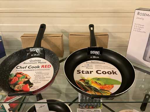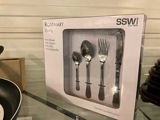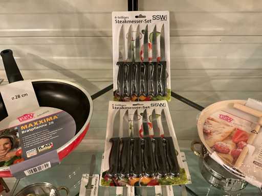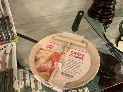Pannen diameters-flensjespan met uitstrijker, 12 x steakmes,1 x 24 delig bestek voor 6 personen