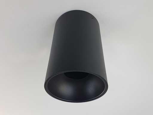 afdichting IP20, product kleur zand zwart, afm. Ø 90 x 140mm, bevestiging inclusief, materiaal aluminium, fitting GU10, bulb niet inbegrepen, geschikt voor binnen, een bulb invoer, voltage 220-240V, SKU 00337 0854