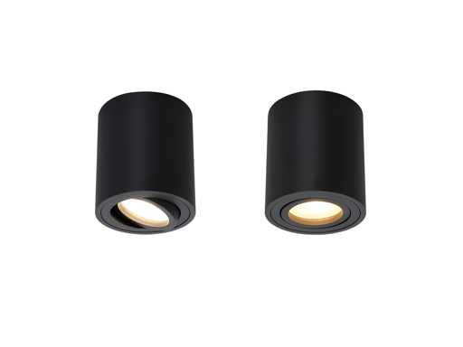 afdichting IP20, product kleur zand zwart, afm. Ø 80 x 84mm, bevestiging inclusief, materiaal aluminium, fitting GU10, bulb niet inbegrepen, geschikt voor binnen, een bulb invoer, voltage 220-240V, SKU 00835