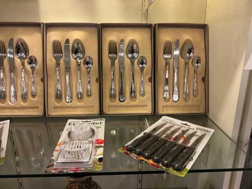 Inox bestekset 24 delig en 30 delig voor 6 personen, professionele koksmessenset, steakmessen,...
