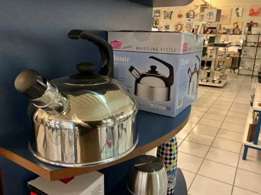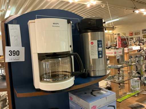 Waaronder 1x koffiemachine KRUPS, thermospomp EMSA, soepthermos, waterketel met fluit GSW, drinkfles, 2x cover, waterfilter BRITA, glazen theepot, sauslepel..