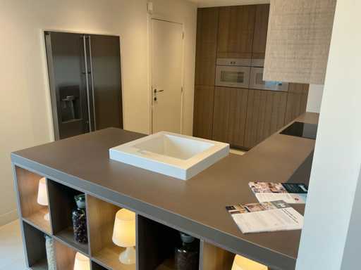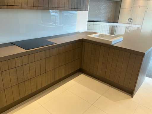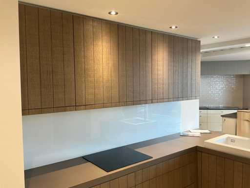 Kookplaat (inductie) Bosch, dampkap Novy, Amerikaanse koelkast van Samsung, spoelbak Villeroy&Bosch, werkblad in composiet, 2 nissen van 45cm, B. 58cm naast de inductiekookplaat, B. 93cm van de spoelbak en L. 1m87cm. Zie bijgevoegde foto’s.