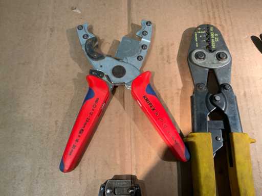 Knipex kabelschaar 95 31 280 ; Knipex buisschaar 90 25 20 ; Klauke K 25 perstang ; Klauke K 32 adereindhulstang ; Egamaster 62592 perstang