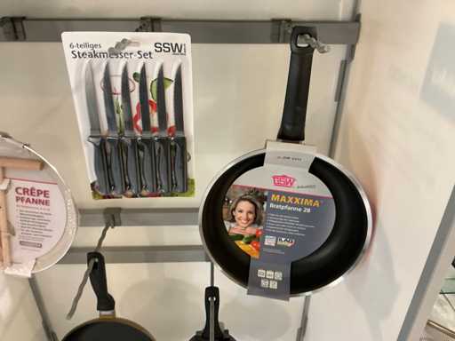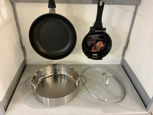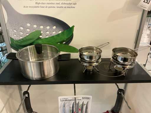 Waaronder GSW en SSW, waaronder diverse kookpotten en pannen, messenset en 2x sauspotje met warmer, 1 x sauteuse rond inox 28 cm met deksel...