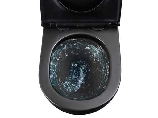 Tornado spoeling Stille spoeling Randloos toilet Soft close zitting Easyclean functie wc bril Gesloten onderbodem Wc brill met softclose Porselein: sterk kleurvast Kleur: Mat Zwart Diepte: 49 cm Breedte: 37 cm Hoogte: 36 cm Gewicht: 28 kg