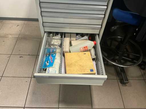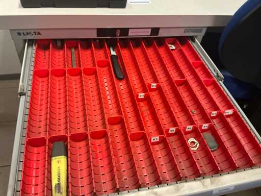 Voorzien met 2 Lista type selection 75 ladekasten/ inclusief inhoud ladekasten en 1 bureaustoel