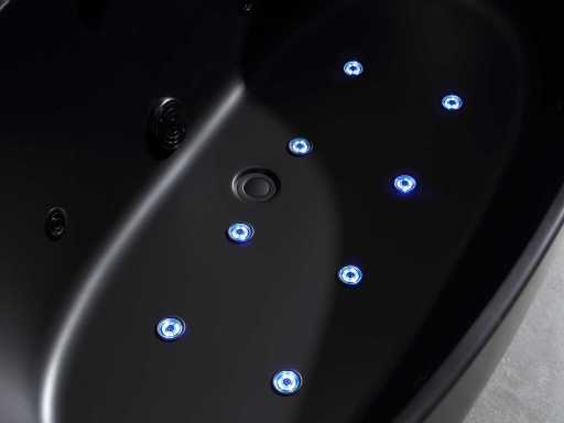 digitaal bedieningspaneel, speakers met bluetooth, waterval inlaat voor toevoer van water, verlichting met kleurentherapie, watertemperatuur regelbaar afvoer pop-up met flexibele waterslang, verwarming 2000 watt(totaal 3500 watt), met plug and play 220v stekker, massagepompen 1x 1 pk hydropomp en 1 luchtpomp (sterkte regelbaar), 8 hydro massagejets en diverse luchtjets, verwarming (2000watt), droogloop en waterniveau beveiliging, handdouche met kraanwerk, sterkte van jets regelbaar, mat zwart kraanwerk van messing, onderstel verstelbaar en van rvs