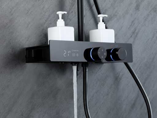 Naast deze drie functies is de doucheset uitgerust met een digitaal display waarop je in een oogopslag de temperatuur van het water en de gebruiksduur kunt aflezen.