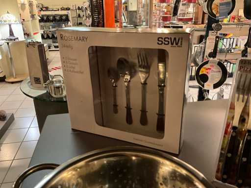 Waaronder messenblok + steakmessensetset, 24 delig bestek voor 6 personen , vergiet, braadpan met deksel....