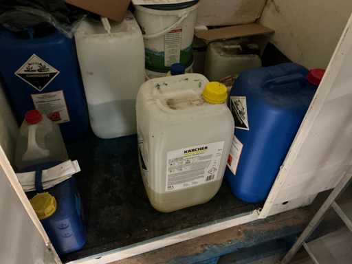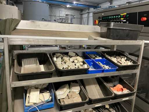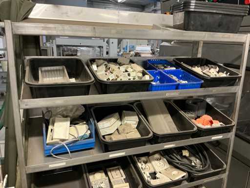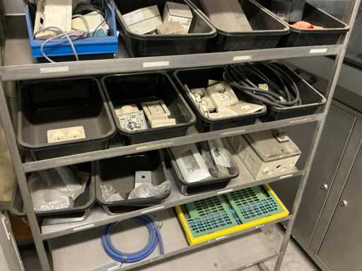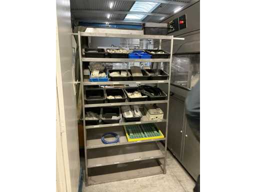 Met inhoud. Compleet met metalen opbergrek met afm ca. 104 x 40 x 185cm.