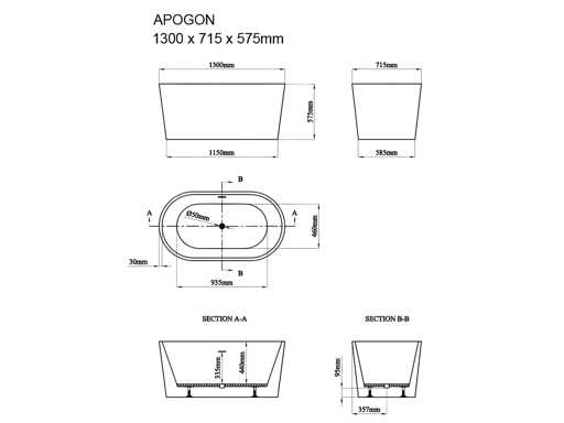 Ovaal vrijstaand bad - 180L - Zwart - Acryl
