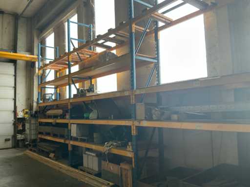 Afmeting staanders: 1000x4500mm/ lengte liggers: 2700mm/ Inclusief: inhoud/ inhoud bestaande uit houten balken, kleine partij machineonderdelen