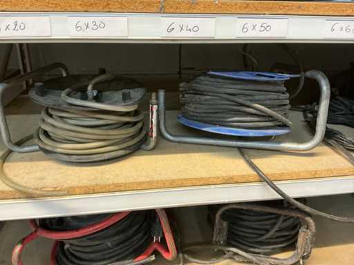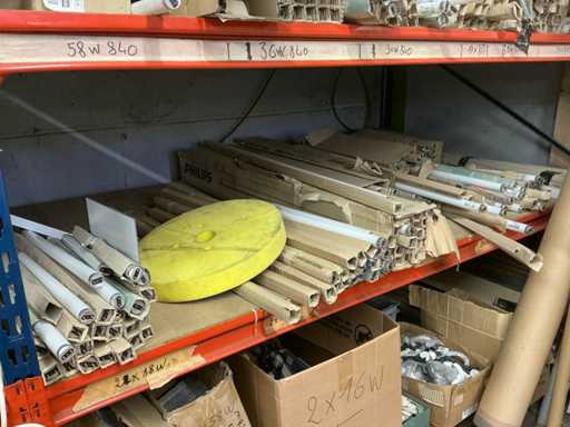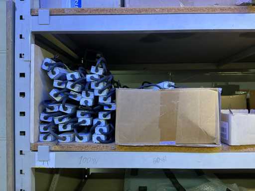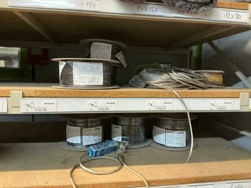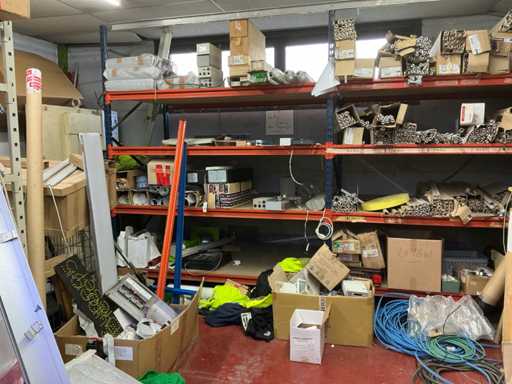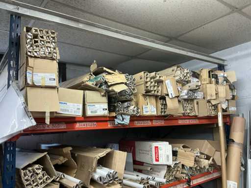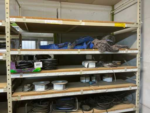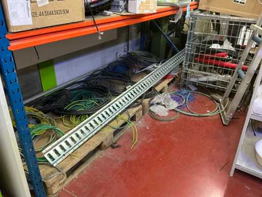 Grote partij diverse bekabeling waaronder ELMAT, aangesproken, recup onderdelen voor verlichting, 4 diverse elektrokabels op haspel, lampen PHILIPS, partij diverse transformatoren waaronder MW en WAECO, partij ledstrips, partij magazijn verlichting, enzovoort. volgens aanwijzing