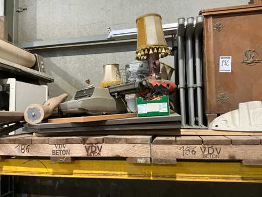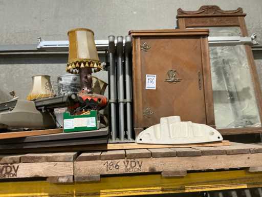 Waaronder: spiegel, kastje, nachtlamp, vintage typemachine, enz