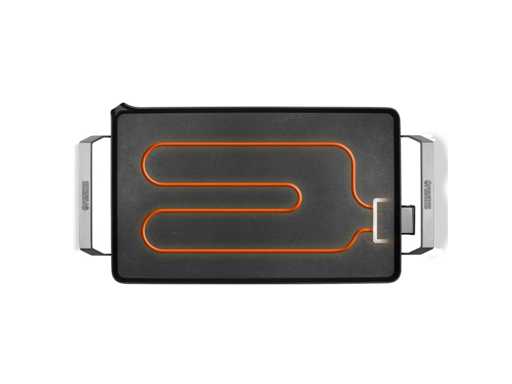 De Teppanyaki-plaat warmt gelijkmatig en zeer snel op dankzij het dubbele verwarmingselement